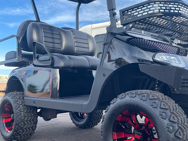 Fleet / Wholesale Base Vehicle includes: automatic charger, AC motor, automatic park brake, Samsung Elite Lithium battery pack, and existing golf-course fleet components (wheels and tires, body, clear windshield if available, and seats).